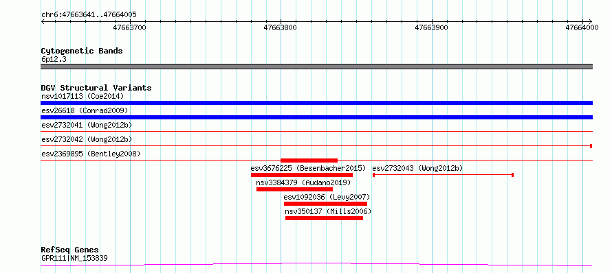 Variant DetailsVariant: essv6822449| Internal ID | 9877000 | | Landmark | | | Location Information | | | Cytoband | 6p12.3 | | Allele length | | Assembly | Allele length | | hg38 | 365 | | hg19 | 365 |