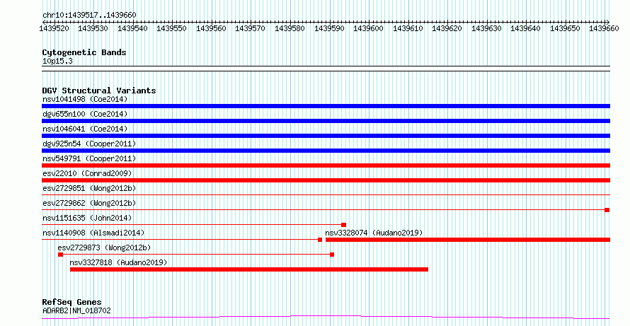 Variant DetailsVariant: essv6823270| Internal ID | 9877738 | | Landmark | | | Location Information | | | Cytoband | 10p15.3 | | Allele length | | Assembly | Allele length | | hg38 | 144 | | hg19 | 144 |