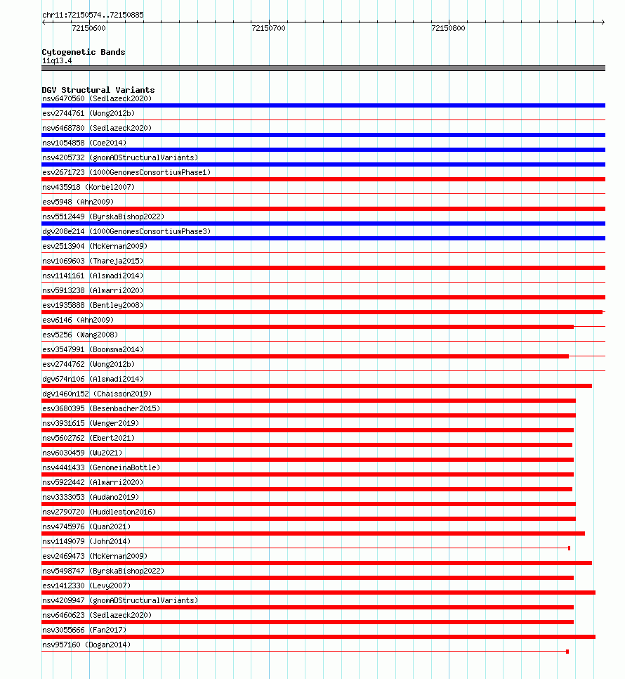 Variant DetailsVariant: essv6823540| Internal ID | 10224668 | | Landmark | | | Location Information | | | Cytoband | 11q13.4 | | Allele length | | Assembly | Allele length | | hg38 | 312 | | hg19 | 312 |