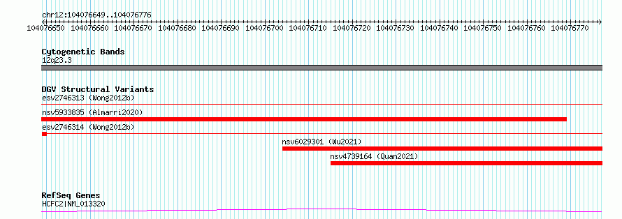 Variant DetailsVariant: essv6823688| Internal ID | 10224801 | | Landmark | | | Location Information | | | Cytoband | 12q23.3 | | Allele length | | Assembly | Allele length | | hg38 | 128 | | hg19 | 128 |