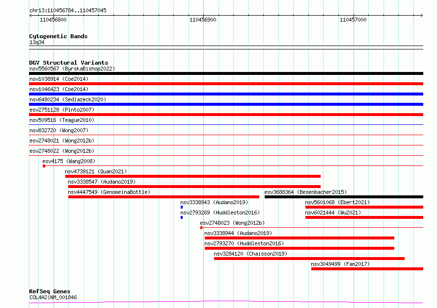 | | Variant Type | CNV deletion | | Copy Number | | | Allele State | | | Allele Origin | | | Probe Count | | | Validation Flag | | | Merged Status | S | | Merged Variants | esv2748022, esv2748021 | | Supporting Variants | | | Samples | SSM079 | | Known Genes | COL4A2 | | Method | Sequencing | | Analysis | Breakdancer:4 times standard deviation,VariationHunter:4 times standard deviation and at least 3 supportting reads | | Platform | Illumina HiSeq 2000 | | Comments | | | Reference | Wong_et_al_2012b | | Pubmed ID | 23290073 | | Accession Number(s) | essv6823852