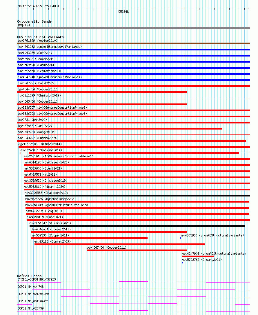 Variant DetailsVariant: essv6824034| Internal ID | 10225113 | | Landmark | | | Location Information | | | Cytoband | 15q21.3 | | Allele length | | Assembly | Allele length | | hg38 | 1537 | | hg19 | 1537 |