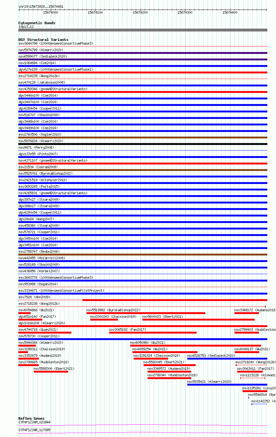 Variant DetailsVariant: essv6824633| Internal ID | 10225651 | | Landmark | | | Location Information | | | Cytoband | 19p13.12 | | Allele length | | Assembly | Allele length | | hg38 | 554 | | hg19 | 554 |