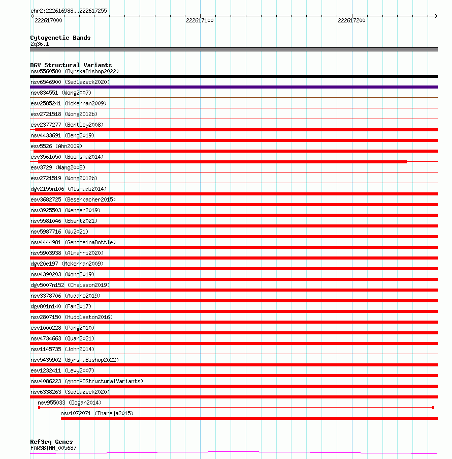 Variant DetailsVariant: essv6825493| Internal ID | 10226425 | | Landmark | | | Location Information | | | Cytoband | 2q36.1 | | Allele length | | Assembly | Allele length | | hg38 | 268 | | hg19 | 268 |