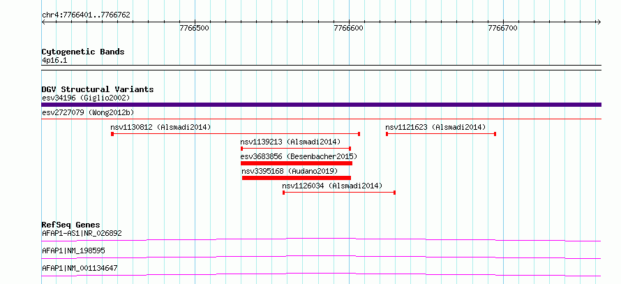 Variant DetailsVariant: essv6825773| Internal ID | 9879992 | | Landmark | | | Location Information | | | Cytoband | 4p16.1 | | Allele length | | Assembly | Allele length | | hg38 | 362 | | hg19 | 362 |