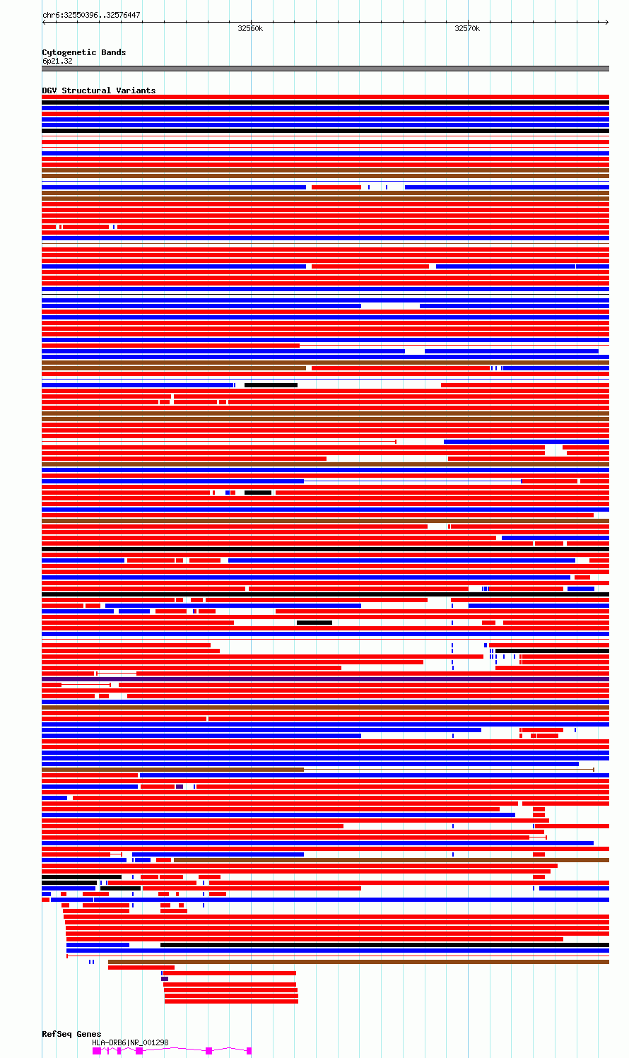 Variant DetailsVariant: essv6825898| Internal ID | 10007702 | | Landmark | | | Location Information | | | Cytoband | 6p21.32 | | Allele length | | Assembly | Allele length | | hg38 | 26052 | | hg19 | 26052 |
