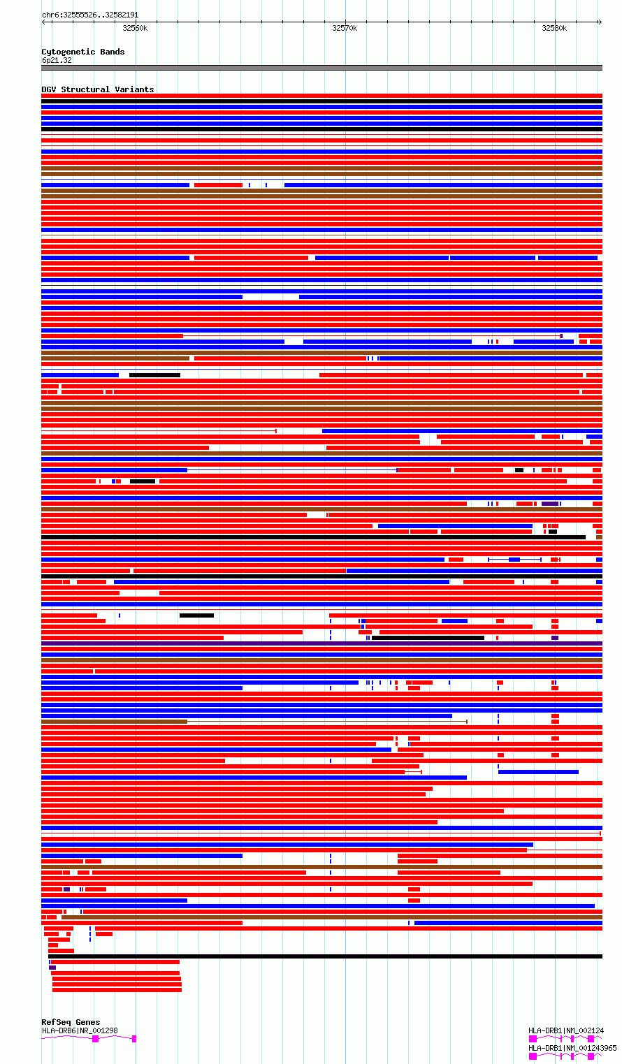 Variant DetailsVariant: essv6825943| Internal ID | 10007706 | | Landmark | | | Location Information | | | Cytoband | 6p21.32 | | Allele length | | Assembly | Allele length | | hg38 | 26666 | | hg19 | 26666 |