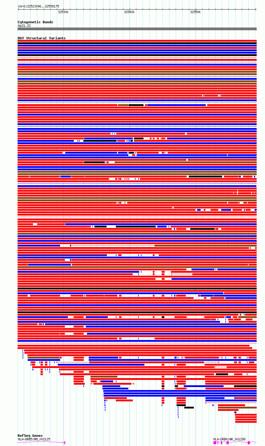 Variant DetailsVariant: essv6826367| Internal ID | 10227213 | | Landmark | | | Location Information | | | Cytoband | 6p21.32 | | Allele length | | Assembly | Allele length | | hg38 | 36080 | | hg19 | 36080 |