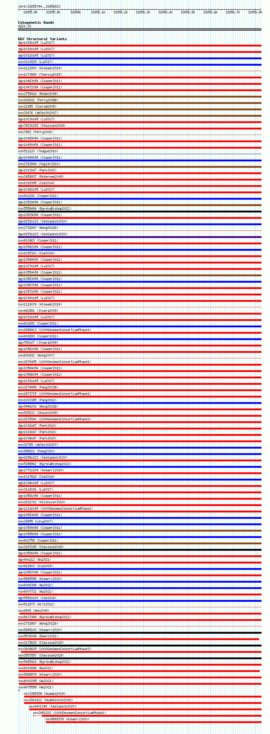 Variant DetailsVariant: essv6826401| Internal ID | 10227242 | | Landmark | | | Location Information | | | Cytoband | 6p21.32 | | Allele length | | Assembly | Allele length | | hg38 | 1080 | | hg19 | 1080 |