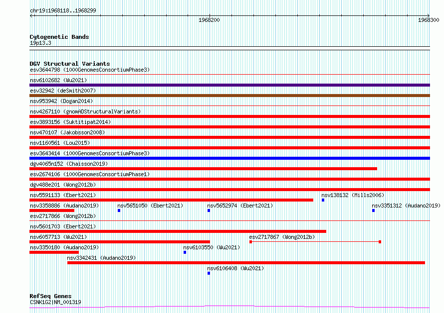 Variant DetailsVariant: essv6828682| Internal ID | 10229296 | | Landmark | | | Location Information | | | Cytoband | 19p13.3 | | Allele length | | Assembly | Allele length | | hg38 | 182 | | hg19 | 182 |