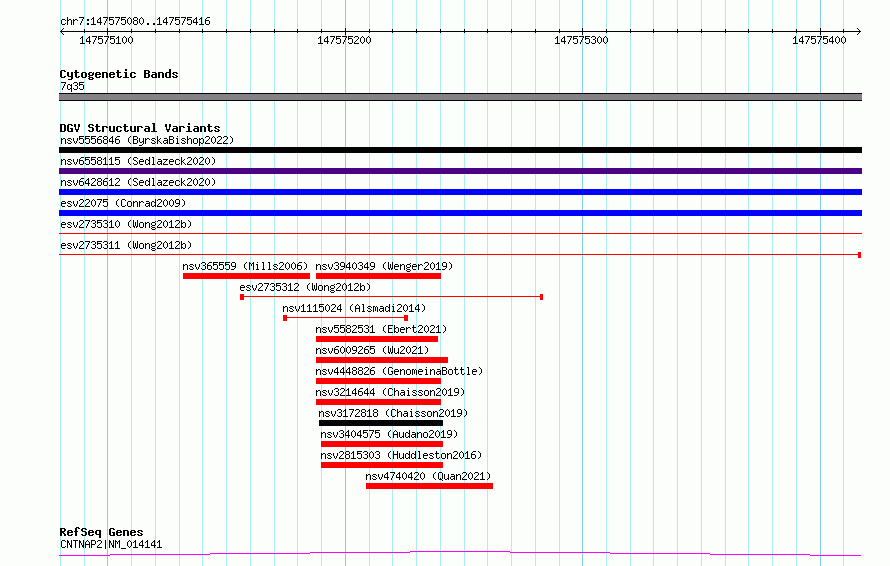 Variant DetailsVariant: essv6830538| Internal ID | 10230967 | | Landmark | | | Location Information | | | Cytoband | 7q35 | | Allele length | | Assembly | Allele length | | hg38 | 337 | | hg19 | 337 |