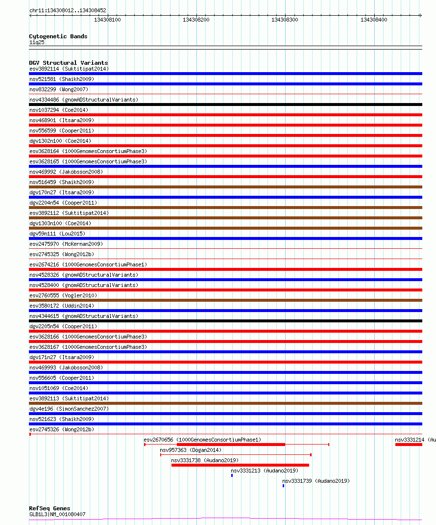 Variant DetailsVariant: essv6831267| Internal ID | 9884935 | | Landmark | | | Location Information | | | Cytoband | 11q25 | | Allele length | | Assembly | Allele length | | hg38 | 441 | | hg19 | 441 |