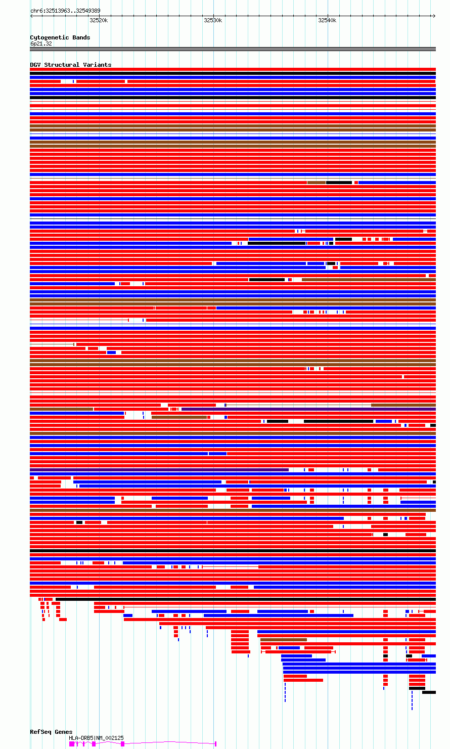 Variant DetailsVariant: essv6833746| Internal ID | 10233666 | | Landmark | | | Location Information | | | Cytoband | 6p21.32 | | Allele length | | Assembly | Allele length | | hg38 | 35427 | | hg19 | 35427 |