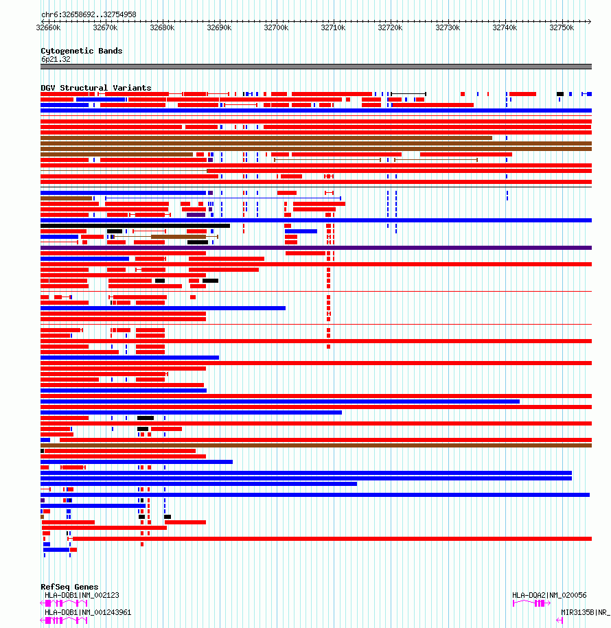 Variant DetailsVariant: essv6833789| Internal ID | 10233705 | | Landmark | | | Location Information | | | Cytoband | 6p21.32 | | Allele length | | Assembly | Allele length | | hg38 | 96267 | | hg19 | 96267 |