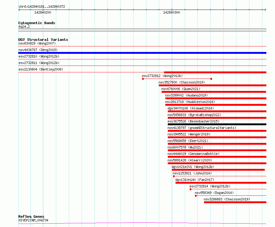 Variant DetailsVariant: essv6833872| Internal ID | 10233780 | | Landmark | | | Location Information | | | Cytoband | 6q24.2 | | Allele length | | Assembly | Allele length | | hg38 | 192 | | hg19 | 192 |