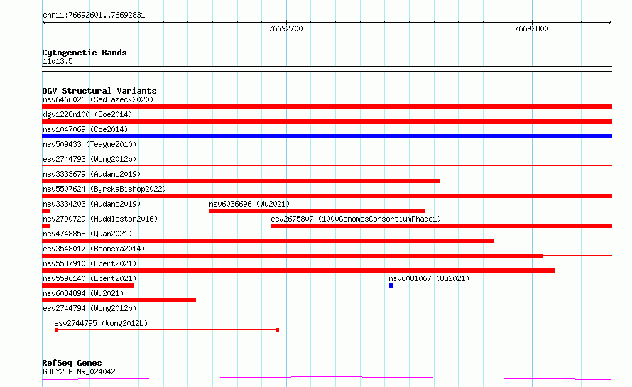 Variant DetailsVariant: essv6834142| Internal ID | 10006274 | | Landmark | | | Location Information | | | Cytoband | 11q13.5 | | Allele length | | Assembly | Allele length | | hg38 | 231 | | hg19 | 231 |
