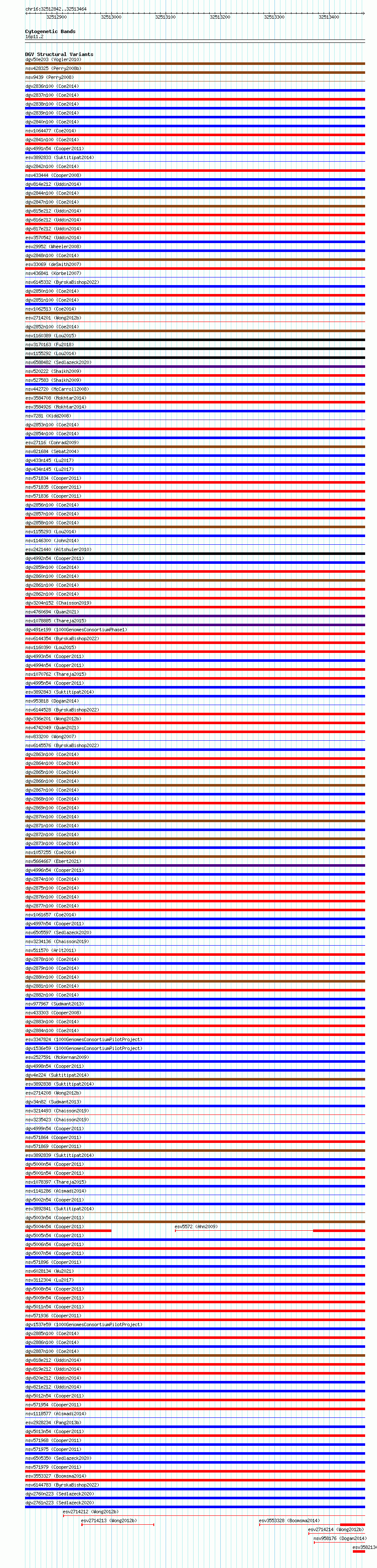 Variant DetailsVariant: essv6835345| Internal ID | 10235105 | | Landmark | | | Location Information | | | Cytoband | 16p11.2 | | Allele length | | Assembly | Allele length | | hg38 | 623 | | hg19 | 623 |