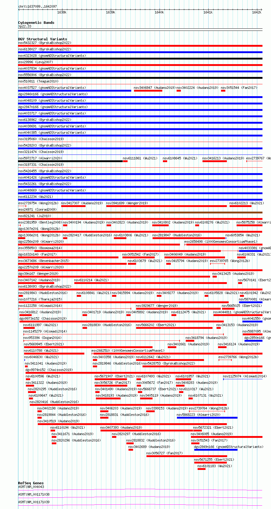 Variant DetailsVariant: essv6837892| Internal ID | 10237772 | | Landmark | | | Location Information | | | Cytoband | Xp22.33 | | Allele length | | Assembly | Allele length | | hg38 | 4999 | | hg19 | 4999 |