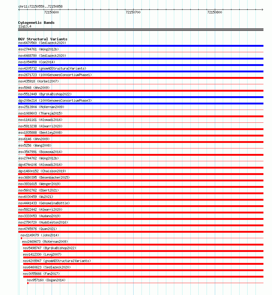 Variant DetailsVariant: essv6838528| Internal ID | 10238346 | | Landmark | | | Location Information | | | Cytoband | 11q13.4 | | Allele length | | Assembly | Allele length | | hg38 | 300 | | hg19 | 300 |