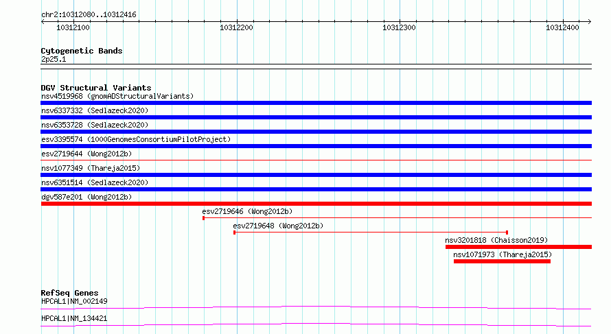 Variant DetailsVariant: essv6840247| Internal ID | 10239705 | | Landmark | | | Location Information | | | Cytoband | 2p25.1 | | Allele length | | Assembly | Allele length | | hg38 | 337 | | hg19 | 337 |