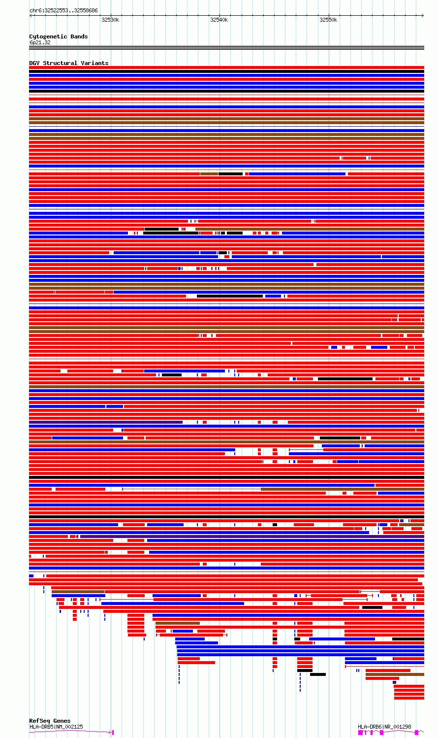 Variant DetailsVariant: essv6841241| Internal ID | 10240600 | | Landmark | | | Location Information | | | Cytoband | 6p21.32 | | Allele length | | Assembly | Allele length | | hg38 | 36134 | | hg19 | 36134 |