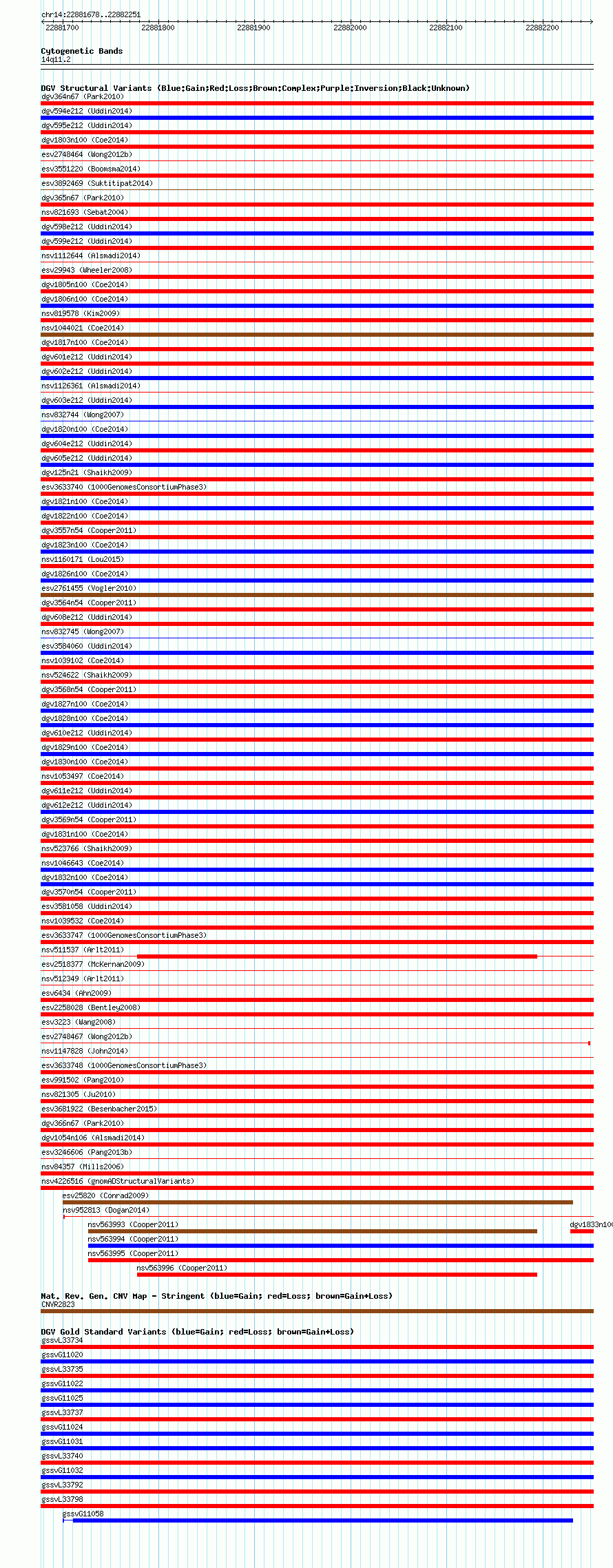 Variant DetailsVariant: essv6842700| Internal ID | 9895226 | | Landmark | | | Location Information | | | Cytoband | 14q11.2 | | Allele length | | Assembly | Allele length | | hg19 | 574 |