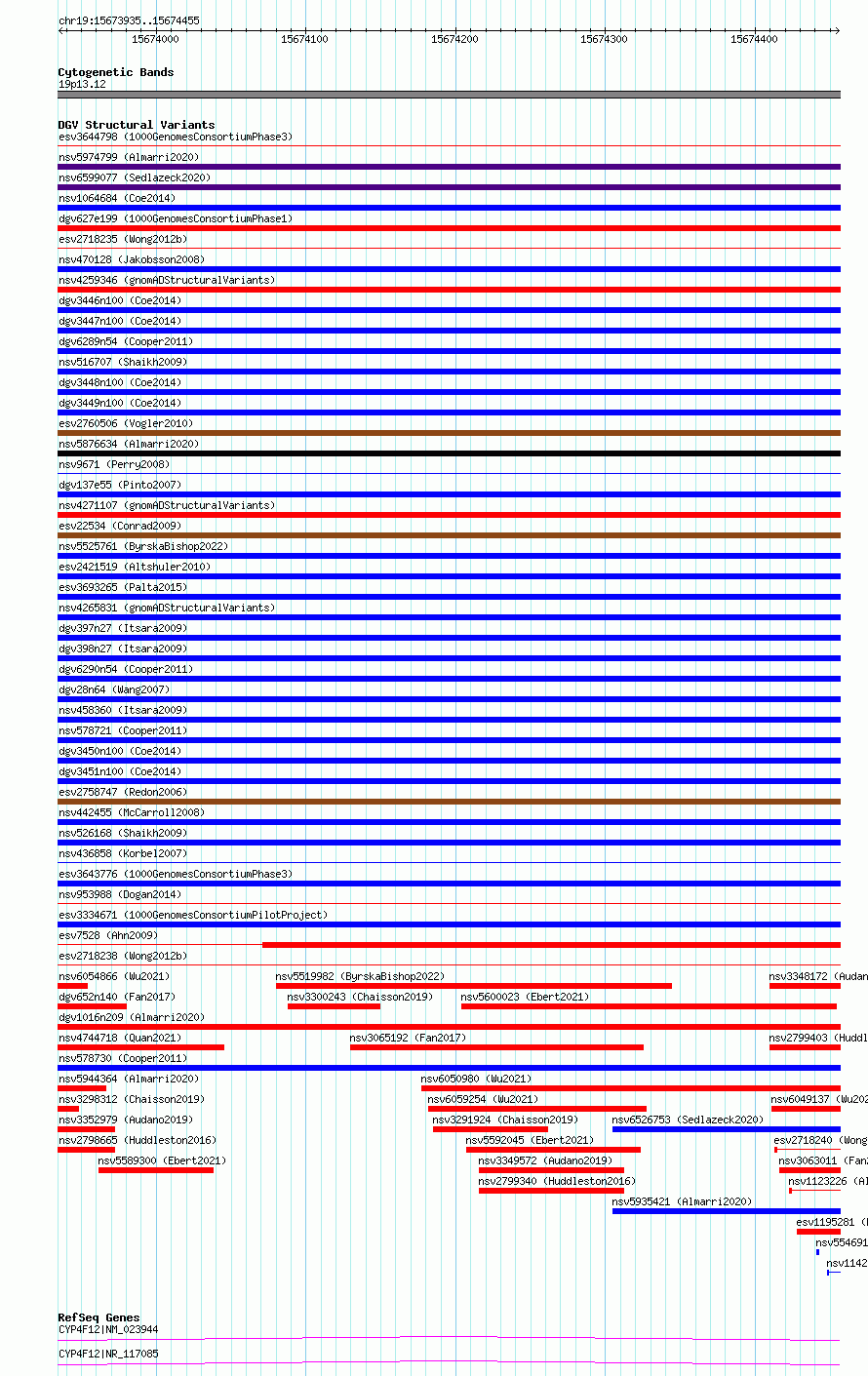 Variant DetailsVariant: essv6843507| Internal ID | 10242637 | | Landmark | | | Location Information | | | Cytoband | 19p13.12 | | Allele length | | Assembly | Allele length | | hg38 | 521 | | hg19 | 521 |