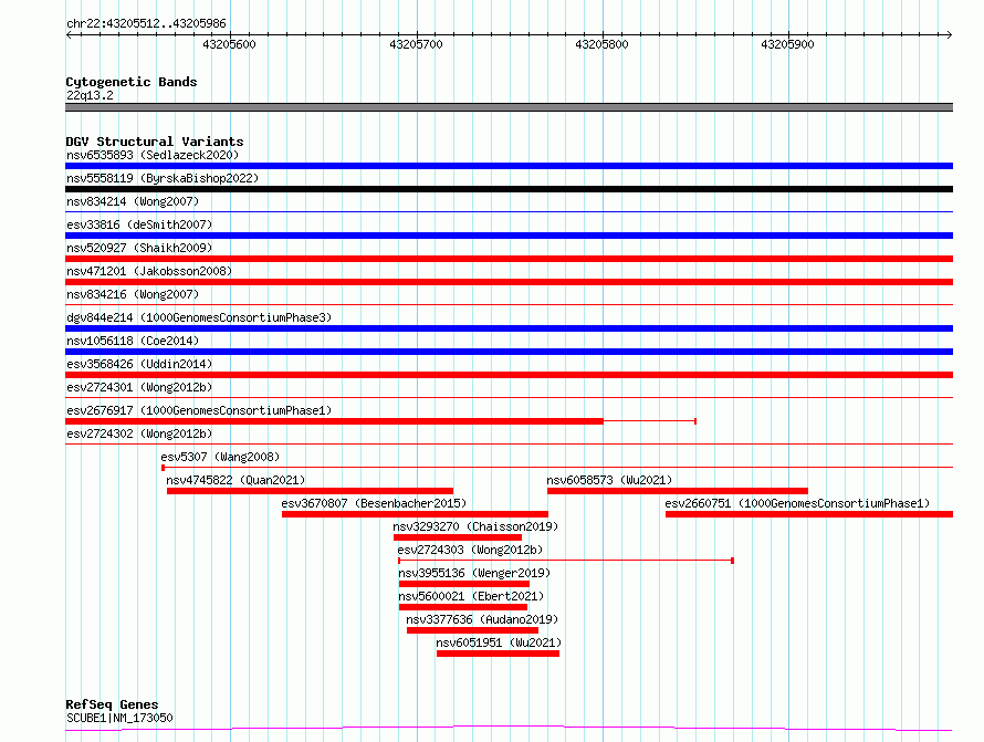 | | Variant Type | CNV deletion | | Copy Number | | | Allele State | | | Allele Origin | | | Probe Count | | | Validation Flag | | | Merged Status | S | | Merged Variants | esv2724301, esv2724302 | | Supporting Variants | | | Samples | SSM084 | | Known Genes | SCUBE1 | | Method | Sequencing | | Analysis | Breakdancer:4 times standard deviation,VariationHunter:4 times standard deviation and at least 3 supportting reads | | Platform | Illumina HiSeq 2000 | | Comments | | | Reference | Wong_et_al_2012b | | Pubmed ID | 23290073 | | Accession Number(s) | essv6843703
