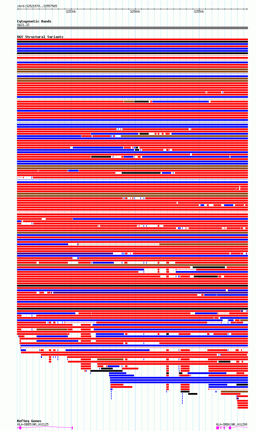 Variant DetailsVariant: essv6844936| Internal ID | 10243924 | | Landmark | | | Location Information | | | Cytoband | 6p21.32 | | Allele length | | Assembly | Allele length | | hg38 | 35987 | | hg19 | 35987 |