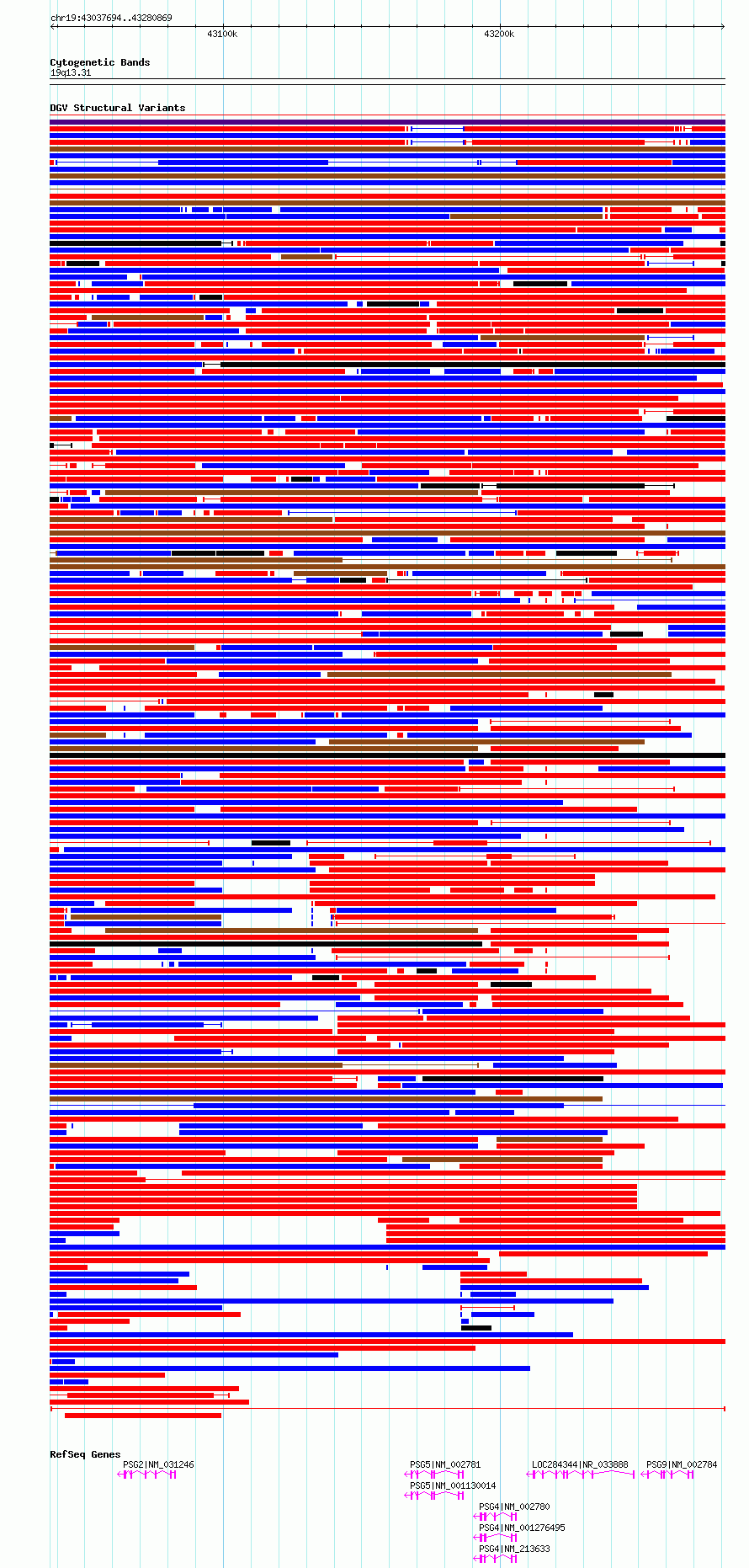 Variant DetailsVariant: essv6846752| Internal ID | 10245559 | | Landmark | | | Location Information | | | Cytoband | 19q13.31 | | Allele length | | Assembly | Allele length | | hg38 | 243176 | | hg19 | 243176 |