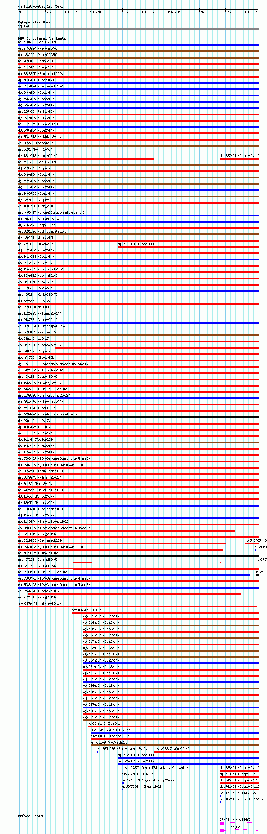 Variant DetailsVariant: essv6847251| Internal ID | 10246009 | | Landmark | | | Location Information | | | Cytoband | 1q31.3 | | Allele length | | Assembly | Allele length | | hg38 | 9333 | | hg19 | 9333 |
