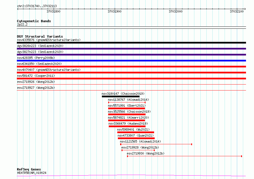 Variant DetailsVariant: essv6847484| Internal ID | 10246219 | | Landmark | | | Location Information | | | Cytoband | 2p22.2 | | Allele length | | Assembly | Allele length | | hg38 | 374 | | hg19 | 374 |