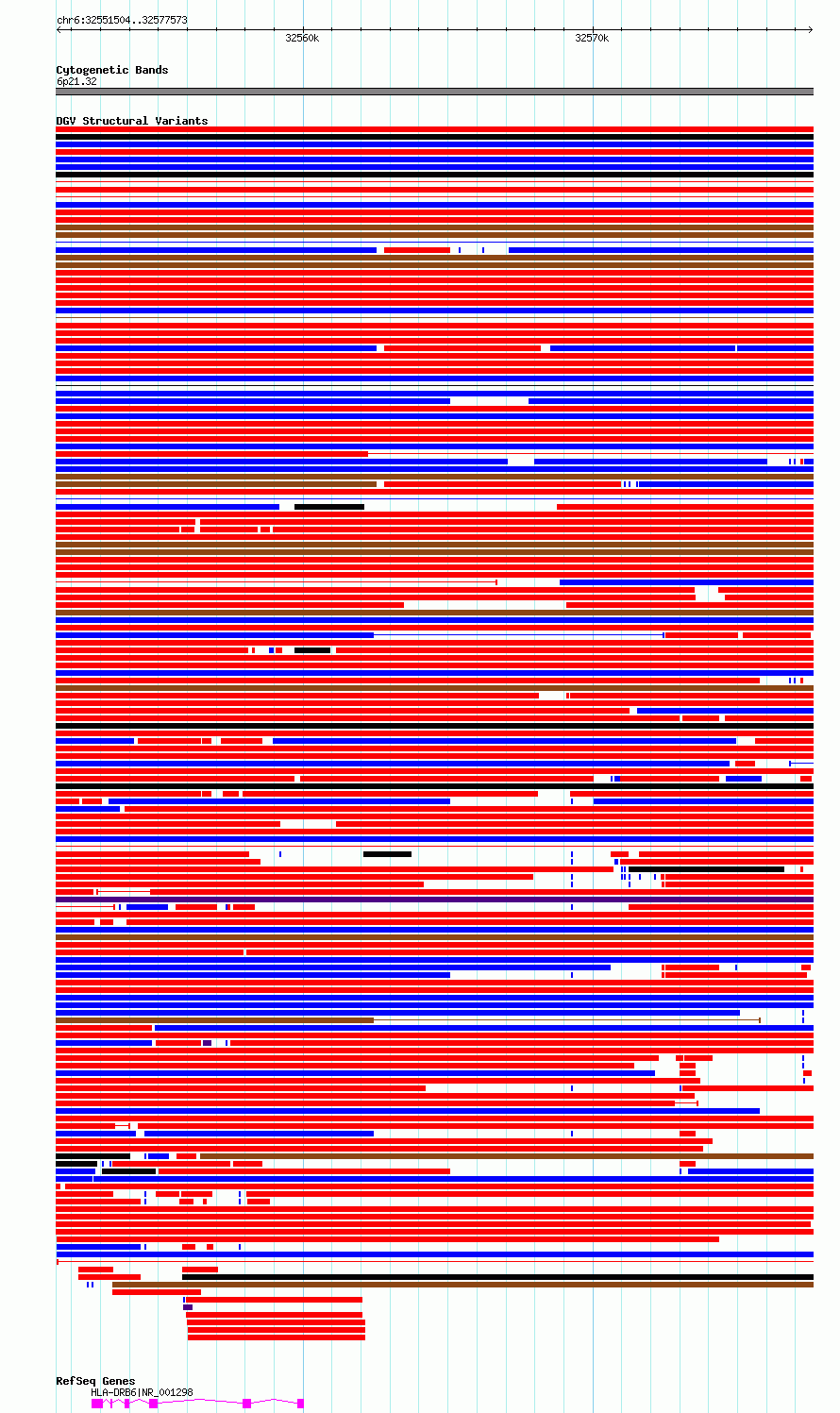 Variant DetailsVariant: essv6855109| Internal ID | 10010967 | | Landmark | | | Location Information | | | Cytoband | 6p21.32 | | Allele length | | Assembly | Allele length | | hg38 | 26070 | | hg19 | 26070 |