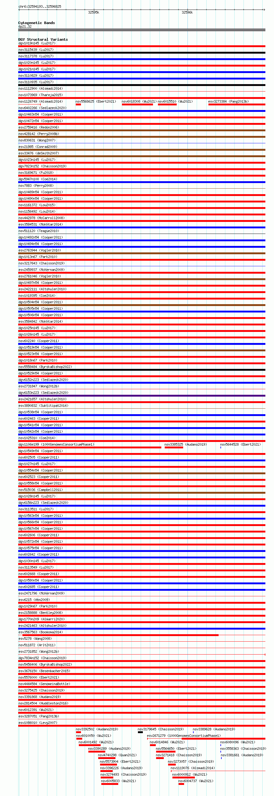 Variant DetailsVariant: essv6855120| Internal ID | 10010966 | | Landmark | | | Location Information | | | Cytoband | 6p21.32 | | Allele length | | Assembly | Allele length | | hg38 | 2633 | | hg19 | 2633 |