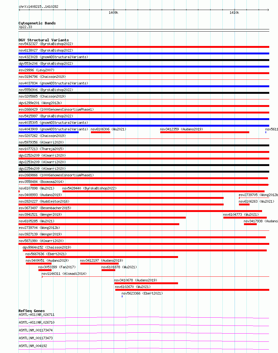 Variant DetailsVariant: essv6855895| Internal ID | 10253789 | | Landmark | | | Location Information | | | Cytoband | Xp22.33 | | Allele length | | Assembly | Allele length | | hg38 | 2068 | | hg19 | 2068 |