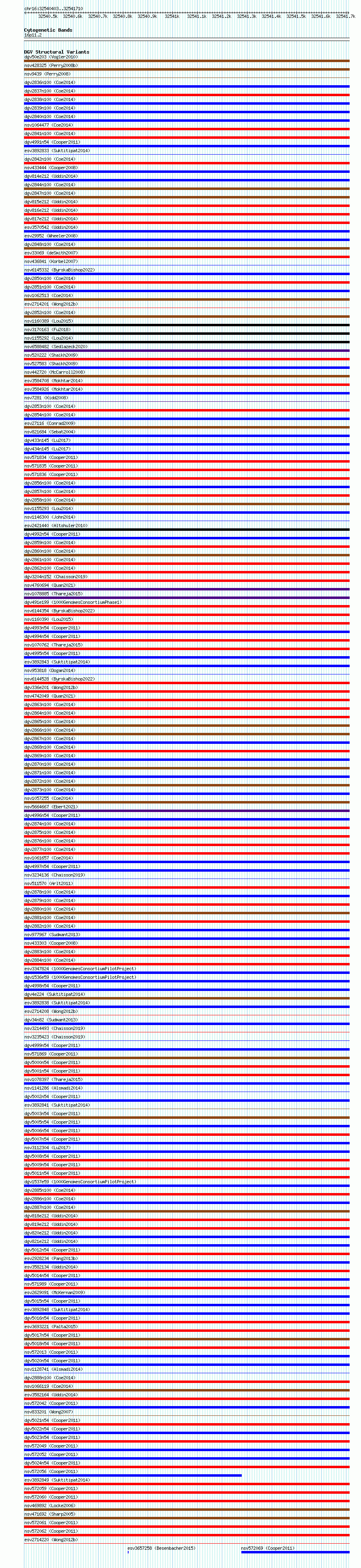 Variant DetailsVariant: essv6858008| Internal ID | 10255692 | | Landmark | | | Location Information | | | Cytoband | 16p11.2 | | Allele length | | Assembly | Allele length | | hg38 | 1308 | | hg19 | 1308 |