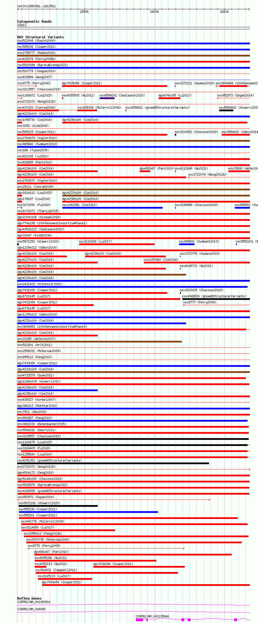 Variant DetailsVariant: essv6858536| Internal ID | 10256167 | | Landmark | | | Location Information | | | Cytoband | 20p13 | | Allele length | | Assembly | Allele length | | hg38 | 33141 | | hg19 | 33141 |