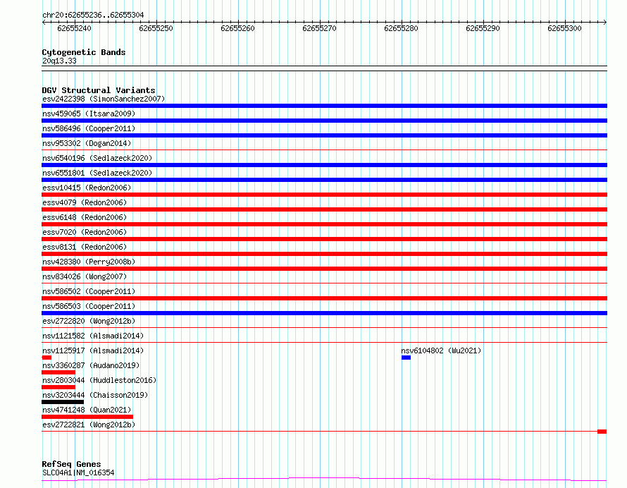 Variant DetailsVariant: essv6858638| Internal ID | 10256258 | | Landmark | | | Location Information | | | Cytoband | 20q13.33 | | Allele length | | Assembly | Allele length | | hg38 | 69 | | hg19 | 69 |