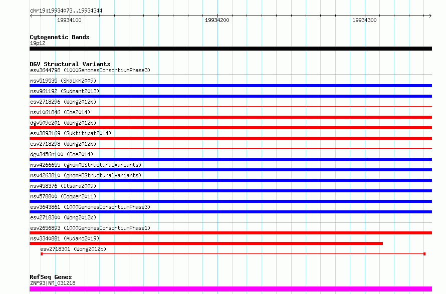 Variant DetailsVariant: essv6858737| Internal ID | 9909661 | | Landmark | | | Location Information | | | Cytoband | 19p12 | | Allele length | | Assembly | Allele length | | hg38 | 272 | | hg19 | 272 |
