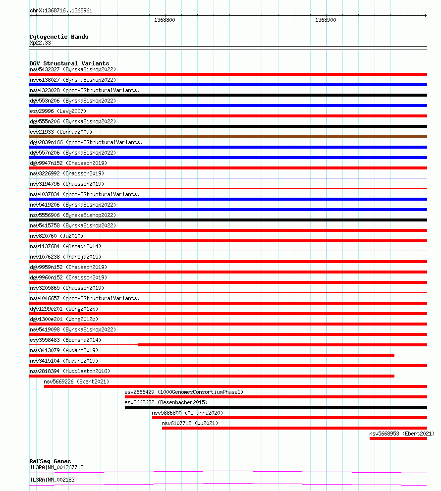 Variant DetailsVariant: essv6859098| Internal ID | 10008671 | | Landmark | | | Location Information | | | Cytoband | Xp22.33 | | Allele length | | Assembly | Allele length | | hg38 | 246 | | hg19 | 246 |
