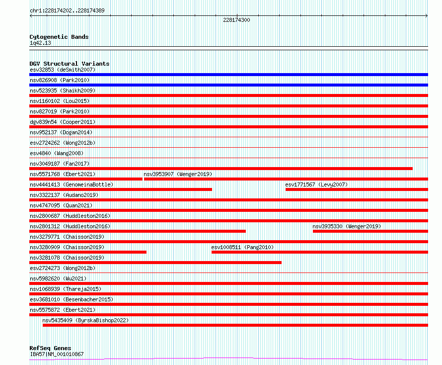 Variant DetailsVariant: essv6859412| Internal ID | 10260718 | | Landmark | | | Location Information | | | Cytoband | 1q42.13 | | Allele length | | Assembly | Allele length | | hg38 | 188 | | hg19 | 188 |