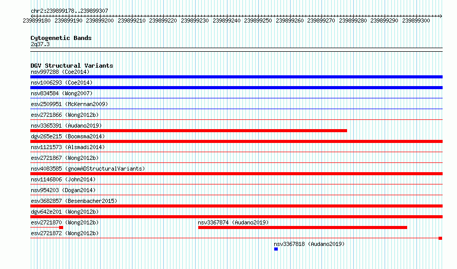 Variant DetailsVariant: essv6859785| Internal ID | 9913696 | | Landmark | | | Location Information | | | Cytoband | 2q37.3 | | Allele length | | Assembly | Allele length | | hg38 | 130 | | hg19 | 130 |