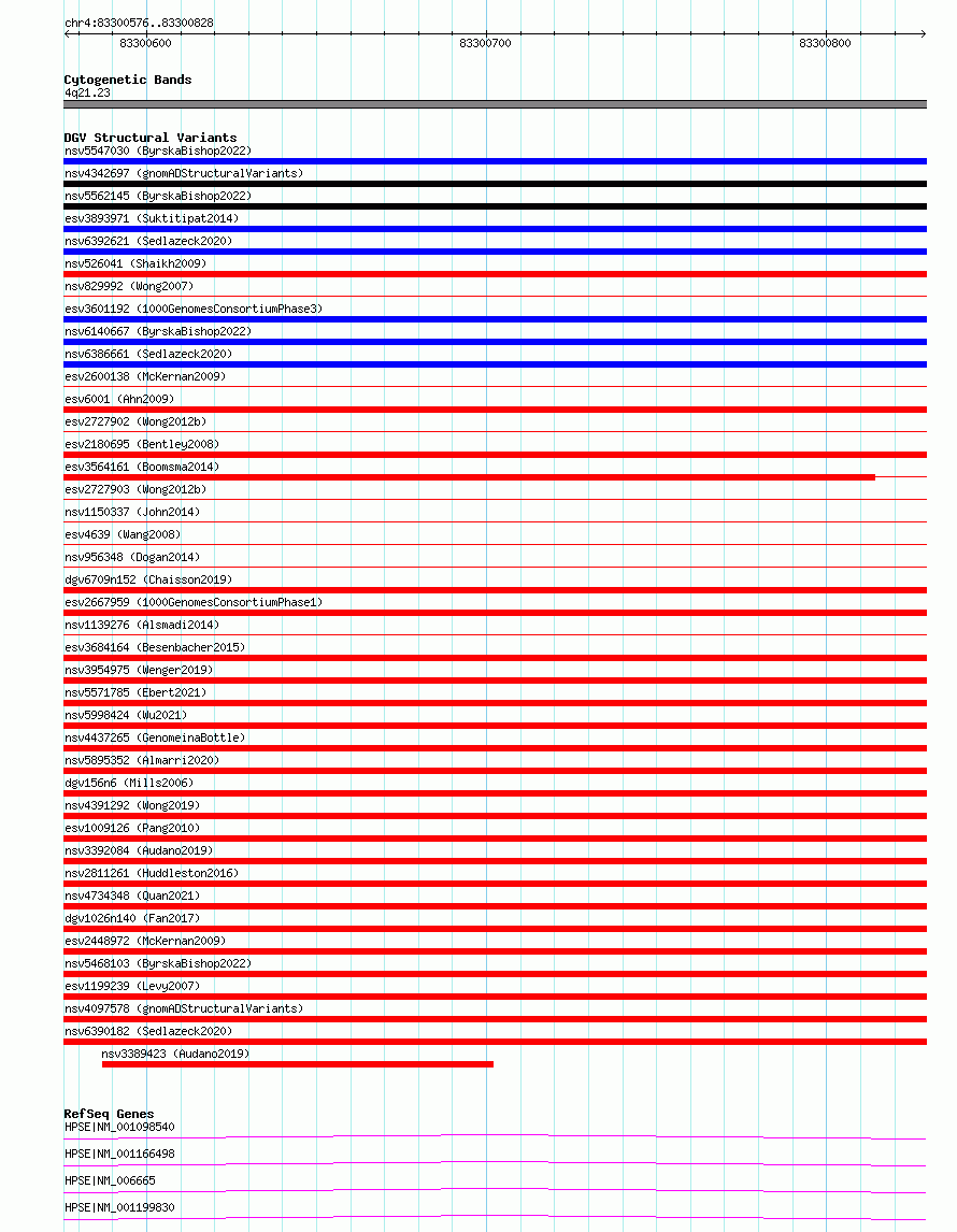 Variant DetailsVariant: essv6860230| Internal ID | 10259981 | | Landmark | | | Location Information | | | Cytoband | 4q21.23 | | Allele length | | Assembly | Allele length | | hg38 | 253 | | hg19 | 253 |