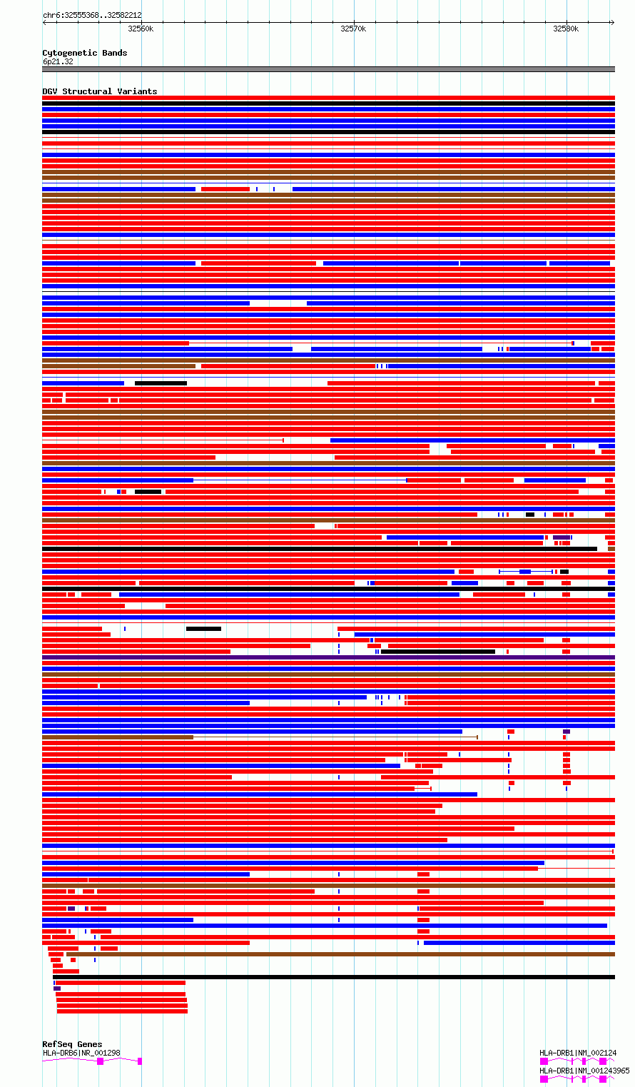 Variant DetailsVariant: essv6860830| Internal ID | 10259442 | | Landmark | | | Location Information | | | Cytoband | 6p21.32 | | Allele length | | Assembly | Allele length | | hg38 | 26845 | | hg19 | 26845 |