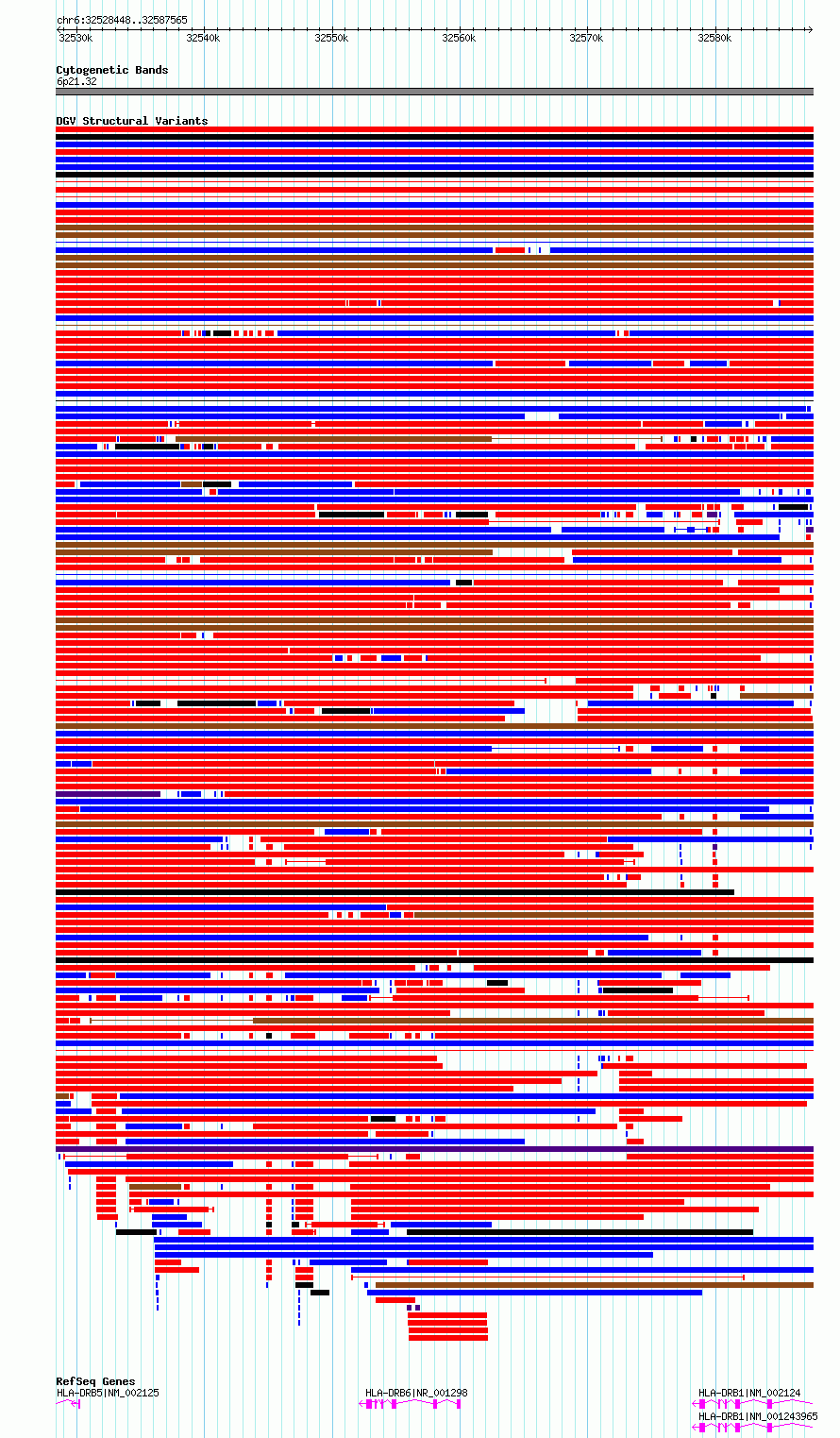 Variant DetailsVariant: essv6860838| Internal ID | 10259435 | | Landmark | | | Location Information | | | Cytoband | 6p21.32 | | Allele length | | Assembly | Allele length | | hg38 | 59118 | | hg19 | 59118 |