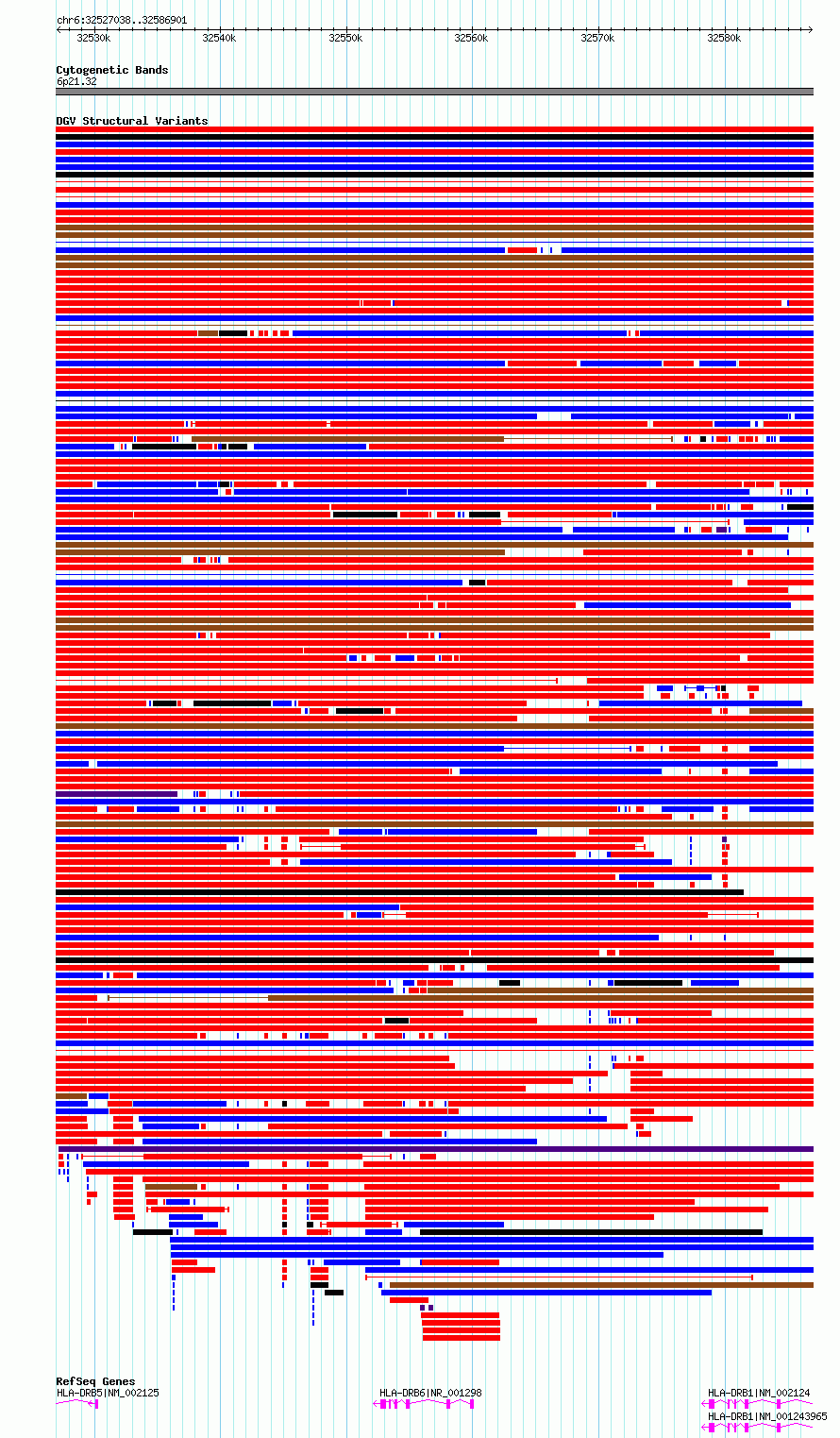 Variant DetailsVariant: essv6860849| Internal ID | 10259425 | | Landmark | | | Location Information | | | Cytoband | 6p21.32 | | Allele length | | Assembly | Allele length | | hg38 | 59864 | | hg19 | 59864 |