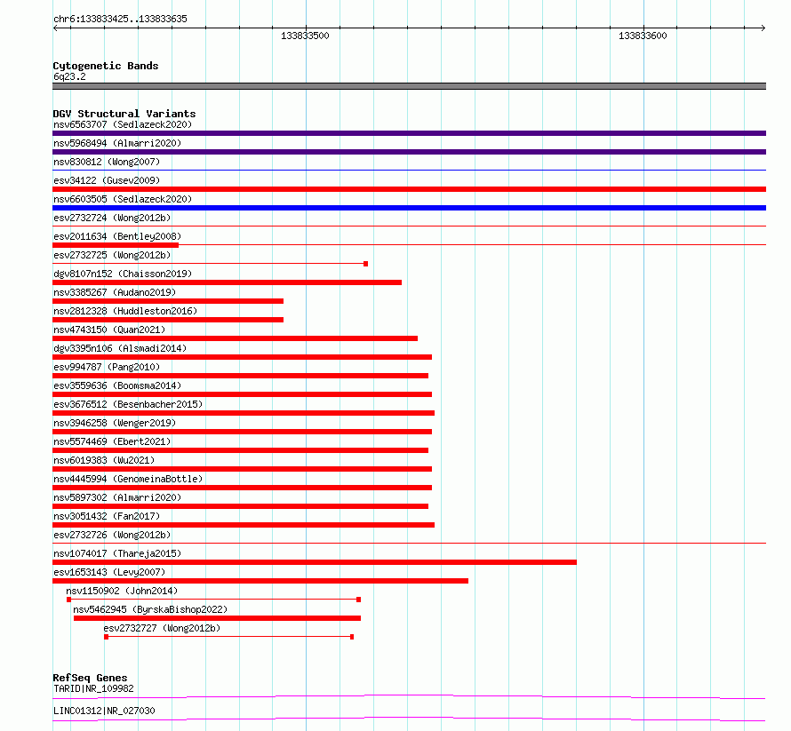 Variant DetailsVariant: essv6860978| Internal ID | 10259309 | | Landmark | | | Location Information | | | Cytoband | 6q23.2 | | Allele length | | Assembly | Allele length | | hg38 | 211 | | hg19 | 211 |