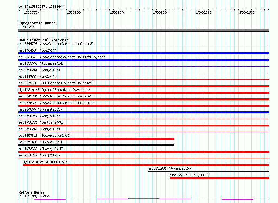 Variant DetailsVariant: essv6863578| Internal ID | 9910283 | | Landmark | | | Location Information | | | Cytoband | 19p13.12 | | Allele length | | Assembly | Allele length | | hg38 | 58 | | hg19 | 58 |