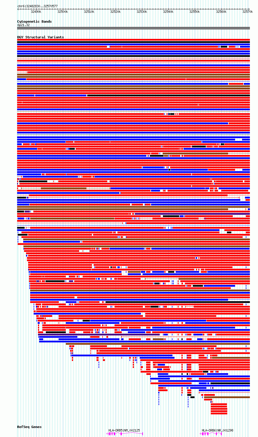 Variant DetailsVariant: essv6865568| Internal ID | 10262493 | | Landmark | | | Location Information | | | Cytoband | 6p21.32 | | Allele length | | Assembly | Allele length | | hg38 | 87748 | | hg19 | 87748 |
