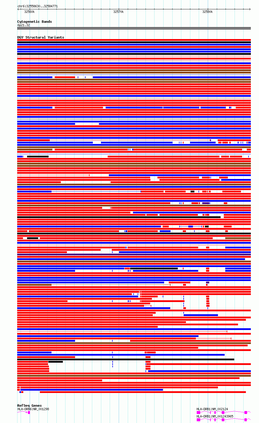 Variant DetailsVariant: essv6865579| Internal ID | 10262503 | | Landmark | | | Location Information | | | Cytoband | 6p21.32 | | Allele length | | Assembly | Allele length | | hg38 | 26142 | | hg19 | 26142 |
